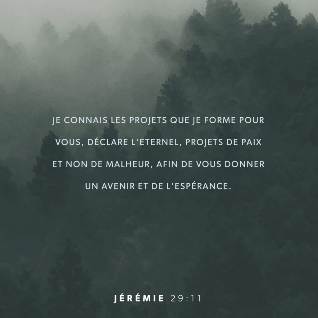 « Car moi, je connais les projets que j’ai conçus en votre faveur, déclare l’Éternel : ce sont des projets de paix et non de malheur, afin de vous assurer un avenir plein d’espérance. » Jérémie 29.11 BDS Des projets de paix et non de malheur… Je me suis souvent posé la question de savoir […]